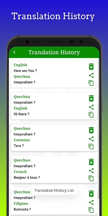 * Translation History List.