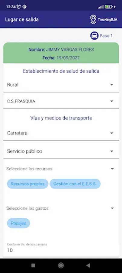 Record of the routes of the BJA doctors to the different assigned health establishments, to measure the effort made and the generation of isochrons.
