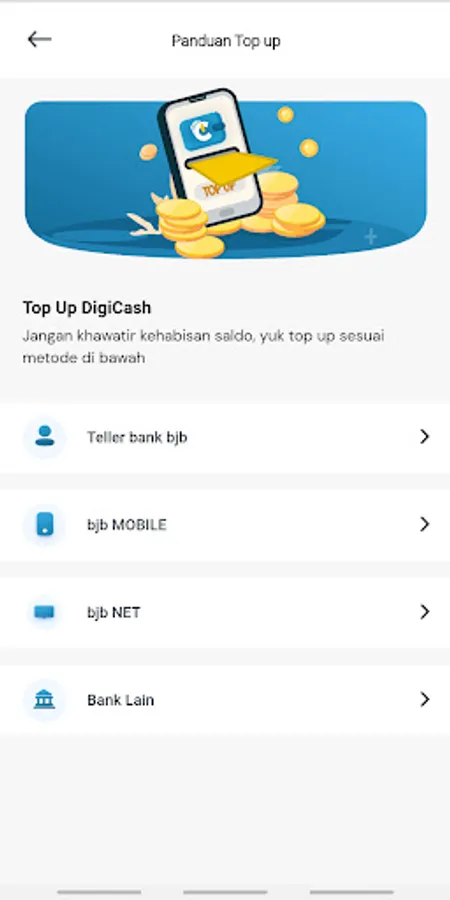 DigiCash provides electronic money services based on bank bjb servers with the advantage of providing convenience in conducting transactions in real time anytime and anywhere using a smartphone for bank bjb customers and non bank bjb customers.