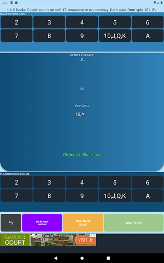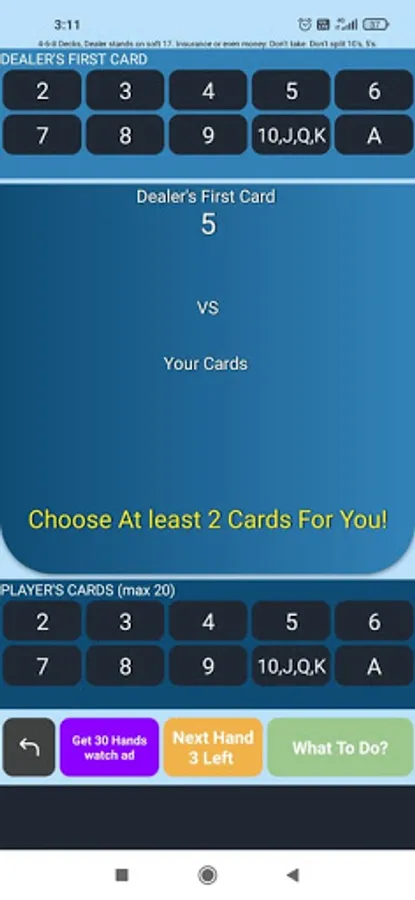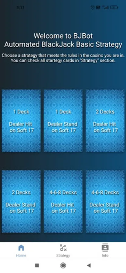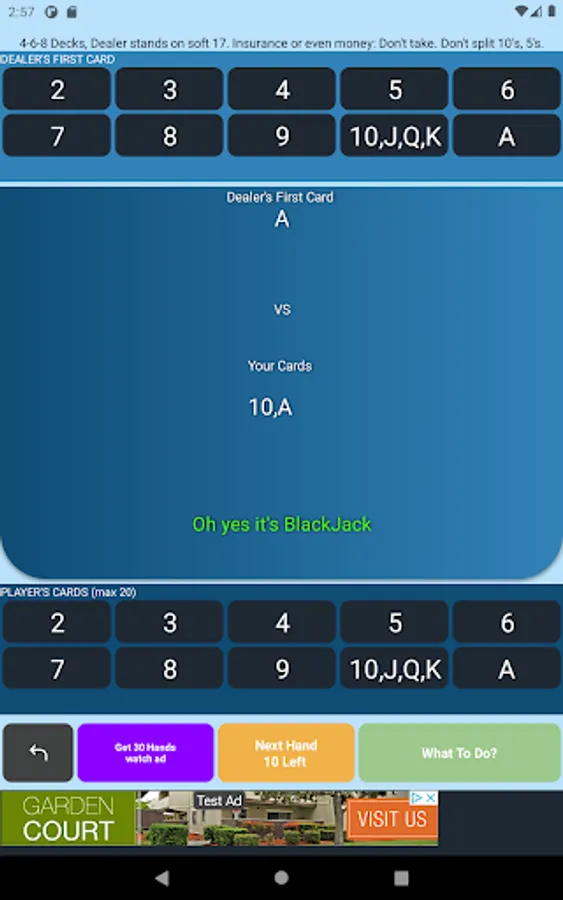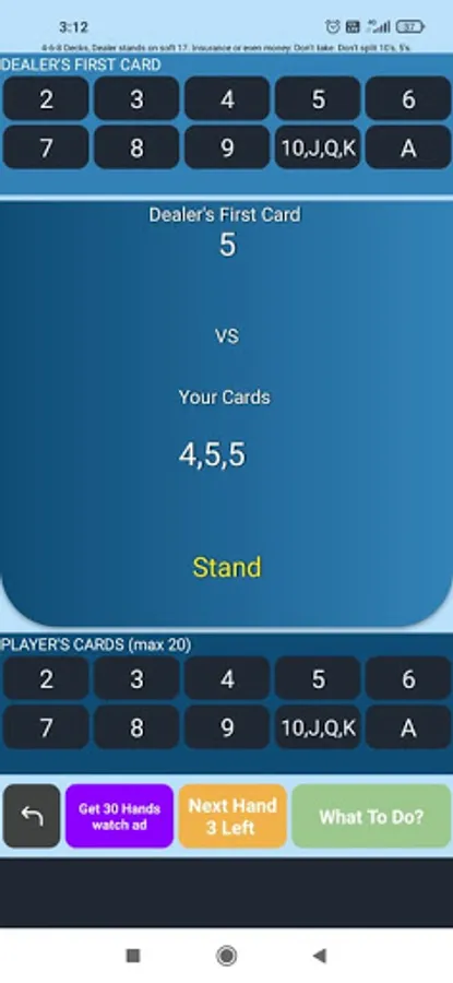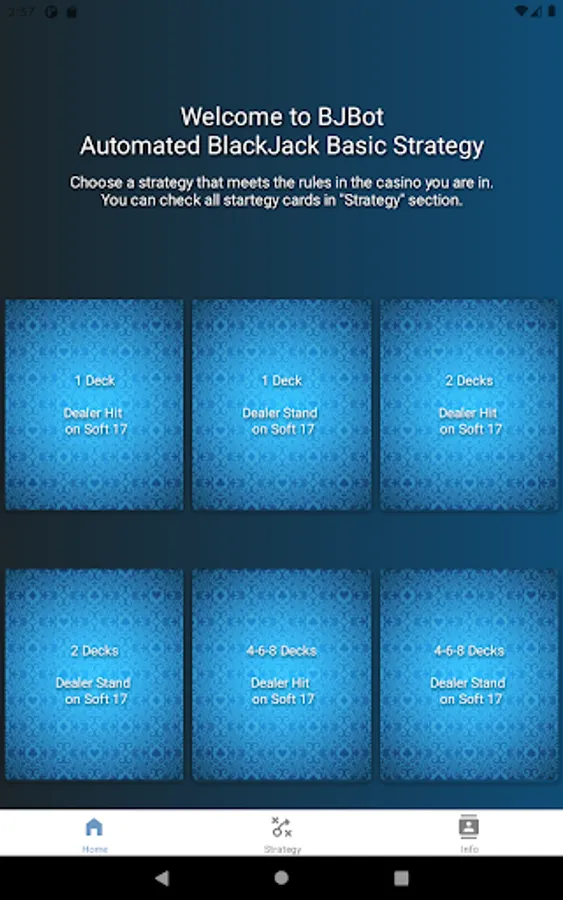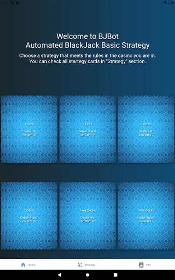 The app is designed to facilitate the use of the BlackJack Basic Strategy.
