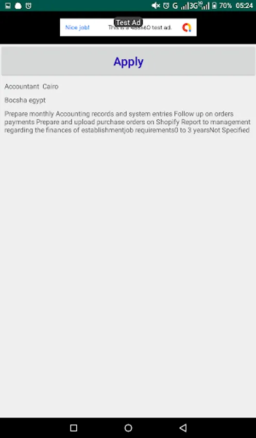 In all search options, this application will give you results for all matched Jobs present in Egypt Jobs database based on your search.