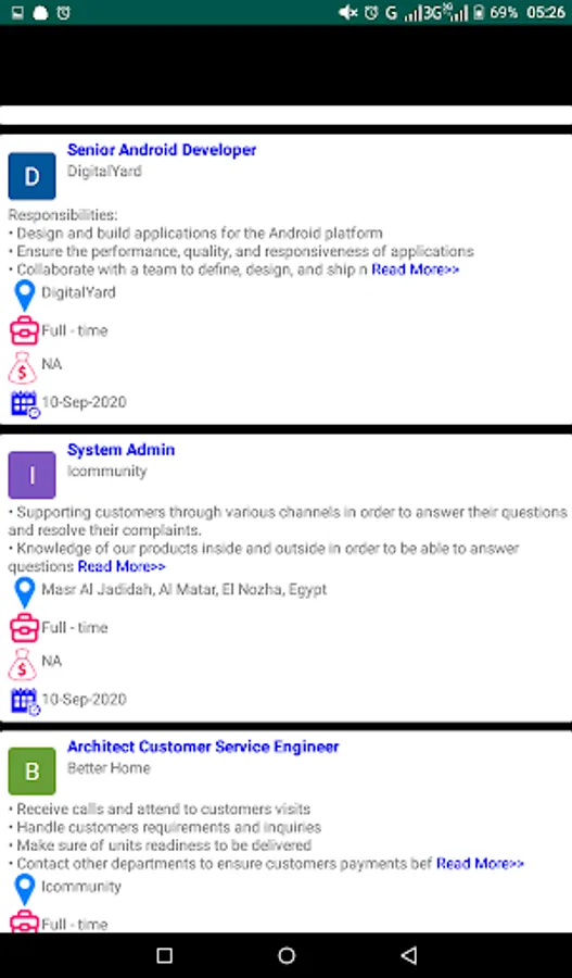 All the jobseekers and professionals who are looking to work in Egypt this app will amaze you due to the fact that you will get your dream job from the list of many jobs available in Egypt. Moreover, it shall help you stay up to date with the latest jobs opportunities in Egypt Jobs market through the notification services which help its users to be the first to know new job adverts in Egypt once posted on the said top leading job sites and recruitment agencies. Therefore, you don’t have to keep checking multiple Jobs search apps to look for Jobs in Egypt. Nevertheless, the app is free, easy to use, clear navigation and has very powerful job searching algorithm.