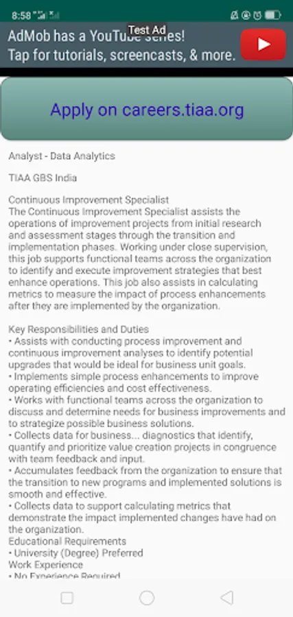 India Jobs App is only extracting latest jobs from almost all job advertising websites in India, organizing and display them to you. The App helps you to know current jobs from different sites at any point in time instead of you visiting to each site looking for current jobs listed, once you find job that fits you, the app will direct you to the very specific site where the job is listed and you can continue with other steps for applying that job. India Jobs app is not affiliated with any of the said sites nor represents the government entity instead is gathering current jobs ‘details and help users to have wide range of options to take just from one place, on palm of your hand.