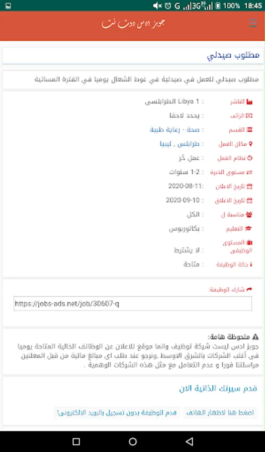 All the jobseekers and professionals who are looking to work in Libya this app will amaze you due to the fact that you will get your dream job from the list of many jobs available in Libya. Moreover, it shall help you stay up to date with the latest jobs opportunities in Libya Jobs market through the notification services which help its users to be the first to know new job adverts in Libya once posted on the said top leading job sites and recruitment agencies. Therefore, you don’t have to keep checking multiple Jobs search apps to look for Jobs in Libya. Nevertheless, the app is free, easy to use, clear navigation and has very powerful job searching algorithm.