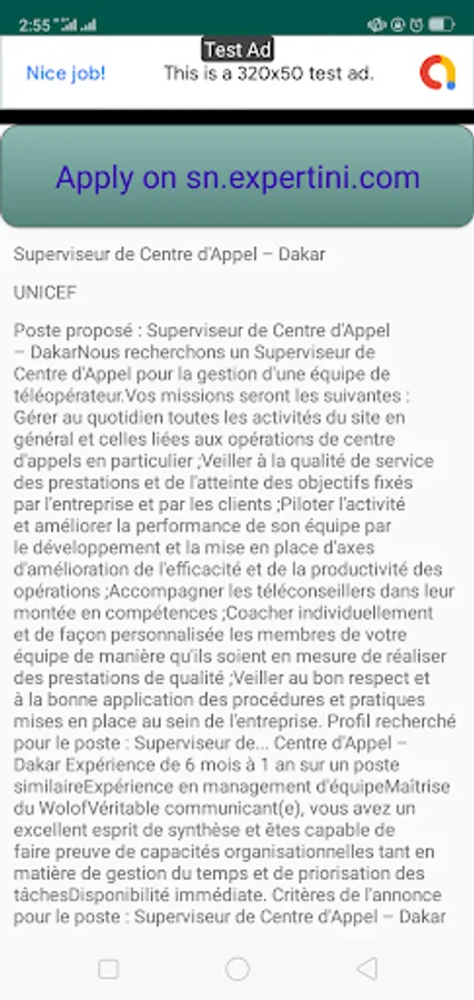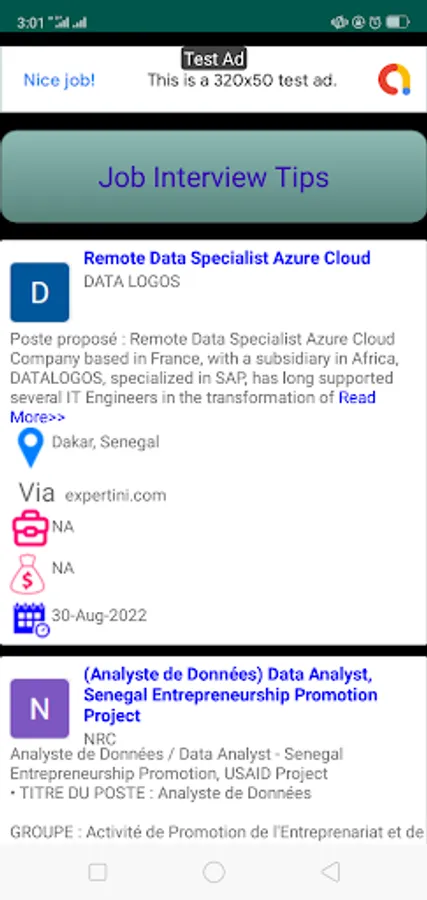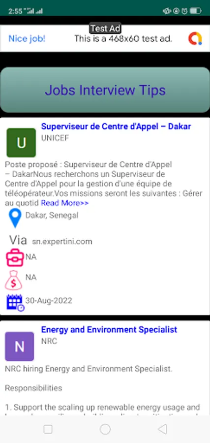 Senegal Jobs App is only extracting latest jobs from almost all job advertising websites in Senegal, organizing and display them to you. The App helps you to know current jobs from different sites at any point in time instead of you visiting to each site looking for current jobs listed, once you find job that fits you, the app will direct you to the very specific site where the job is listed and you can continue with other steps for applying that job. Senegal Jobs app is not affiliated with any of the sites instead is gathering current jobs ‘details and help users to have wide range of options to take just from one place, on palm of your hand.