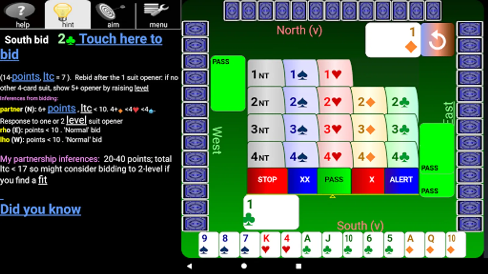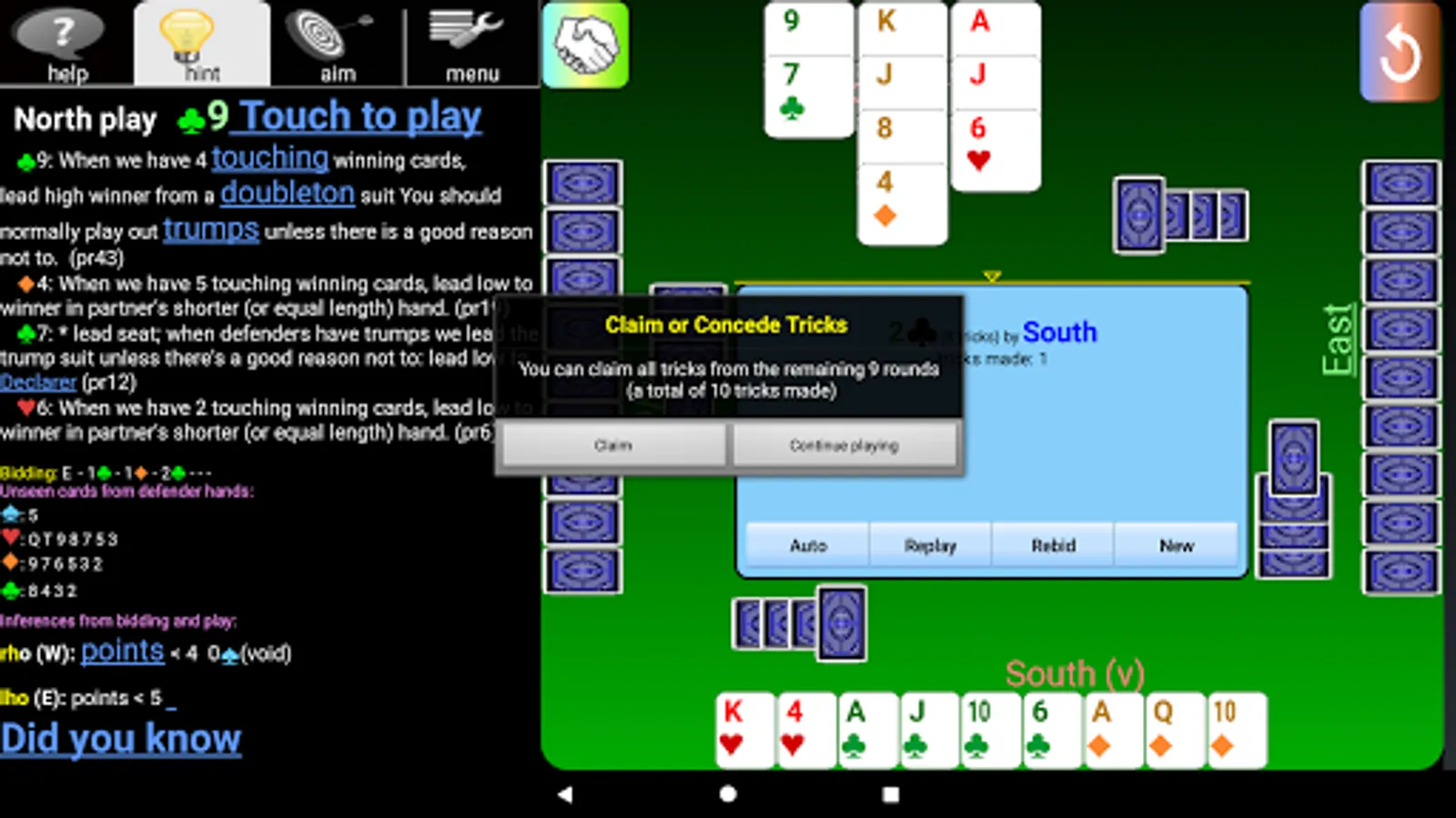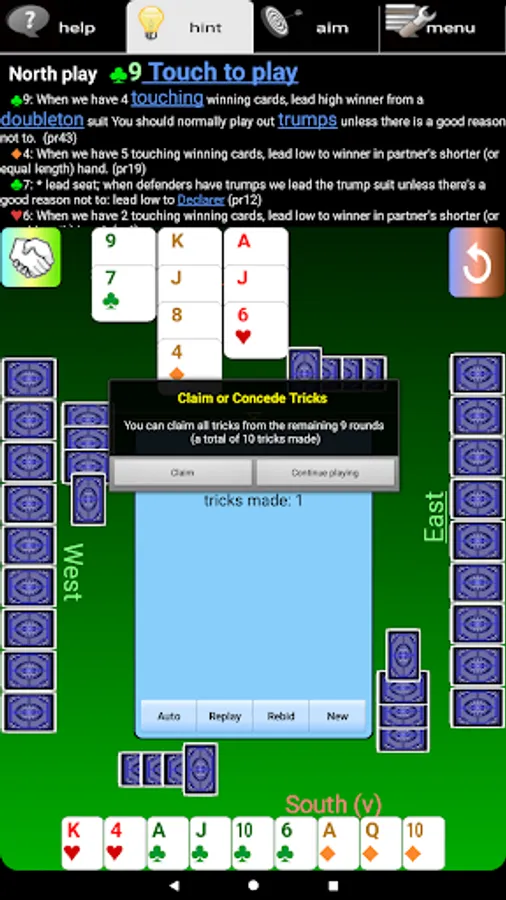 ▶ see detailed hints for your next bid or play
