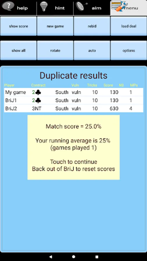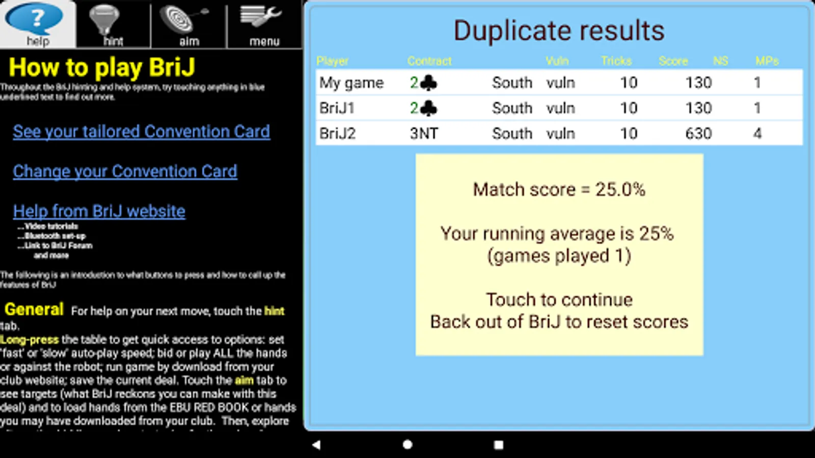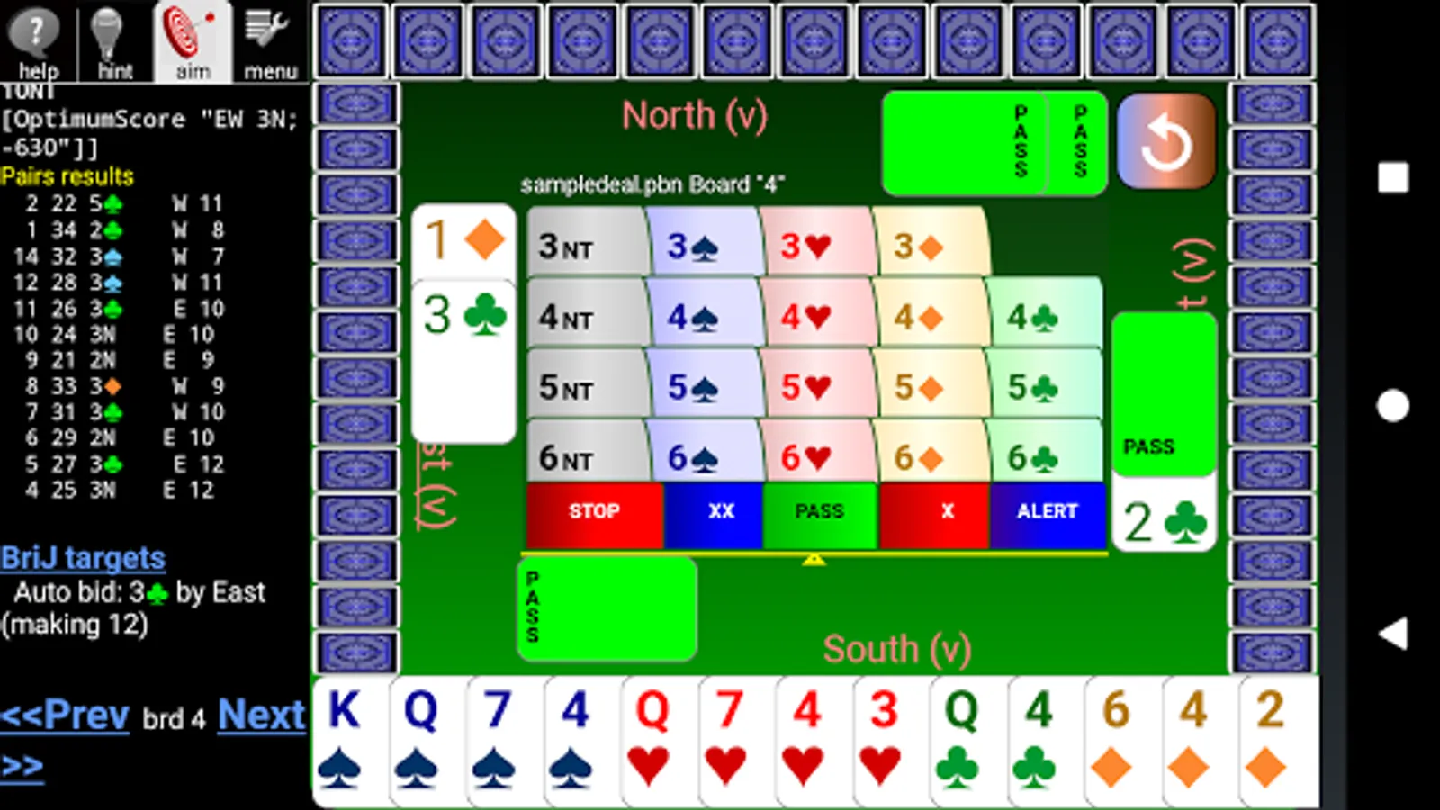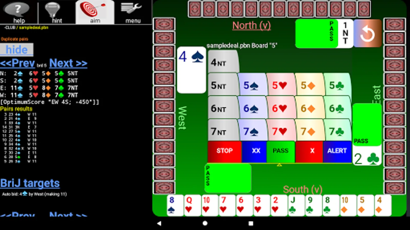 ▶ see detailed hints for your next bid or play