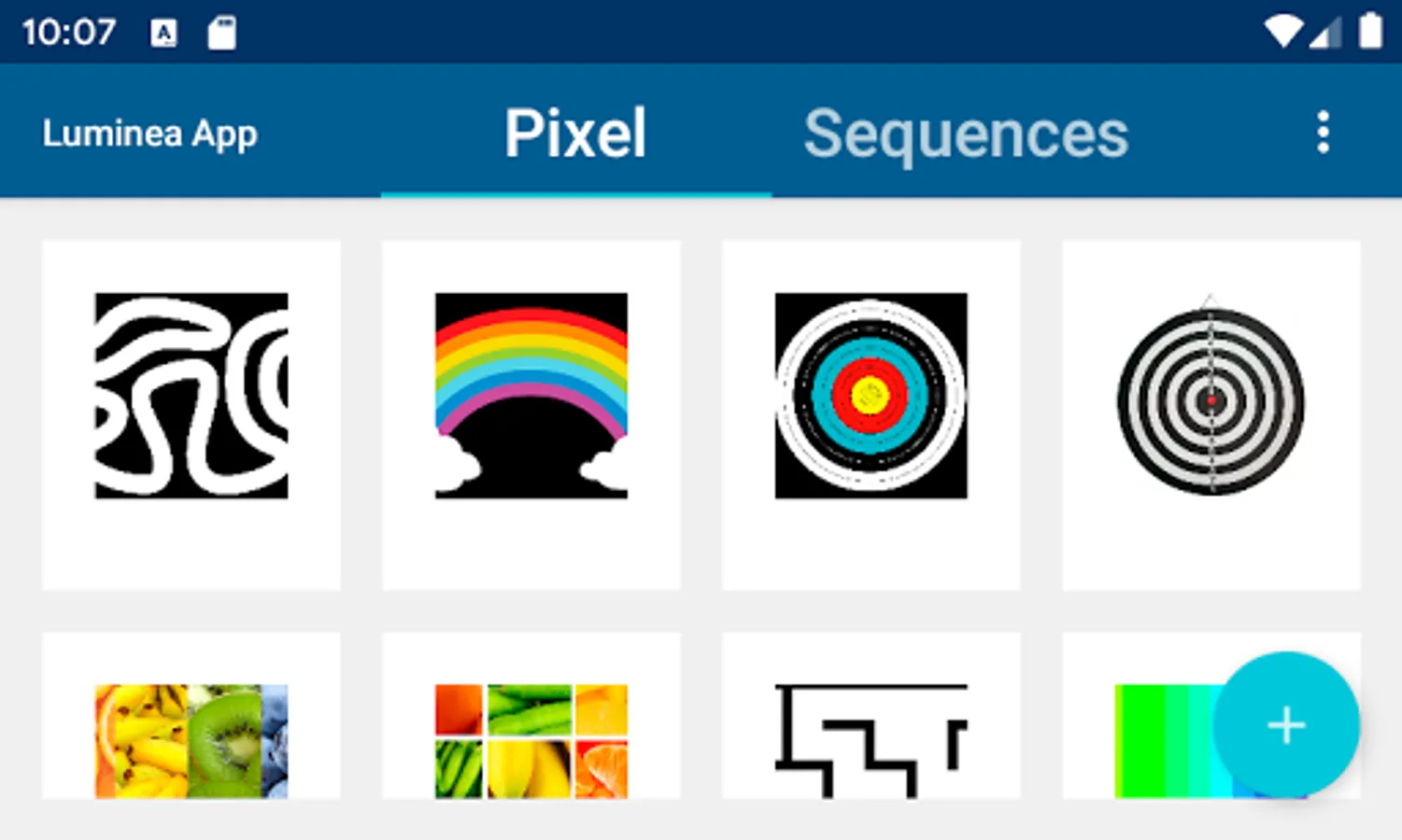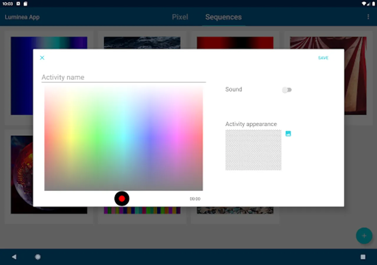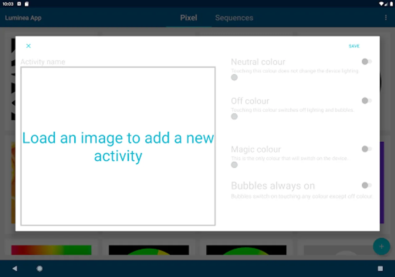 With the Luminea app you can control the colour and the features of your multisensory light source. Use pictures to set the lighting colour and play sequences that mix colour and music.