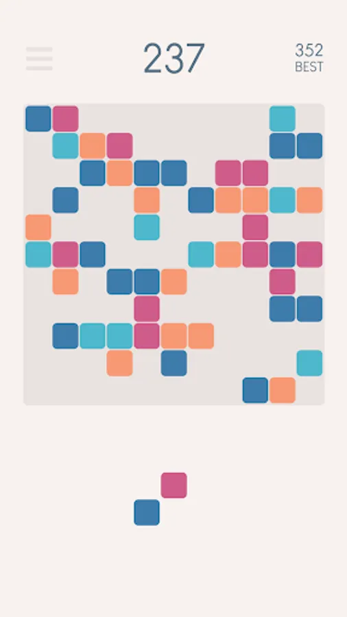 You have to place random shapes consisting of different colored blocks inside of a rectangular field.