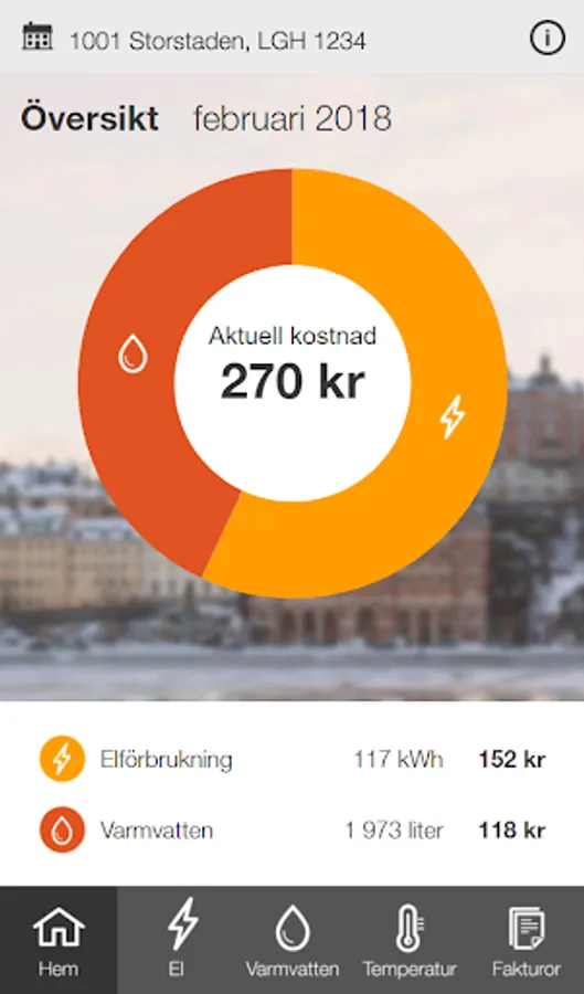 With EnergiKollen you who live in a property in Big City Housing easy to have full control of your residential energy consumption. Via the app / web you can see your electricity and water, both in real time and statistically over time, and your future invoices. Using EnergiKollen you can keep track of your energy consumption and thus affect both the environment and your finances!