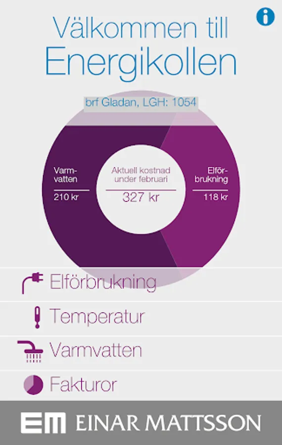 With EnergiKollen you living in a Einar Mattsson property easily have full control of your residential energy consumption. Via the app / web, you can see your electricity and water consumption, both in real time and statistically over time, and your next bill. Using EnergiKollen you can keep track of your energy consumption and thus affect both the environment and your finances!