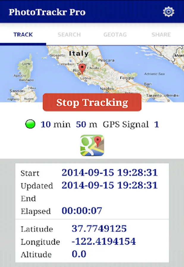 A2. It is okay. By saying it’s okay we mean all of GPS locations are already inserted to your database up to that point. The app inserts GPS locations to your database in real-time when it receives GPS signal. If the app was closed accidentally, you simply don’t know the end time of the track. But it is not used for geotagging your photos anyway. That’s it. So start tracking again.