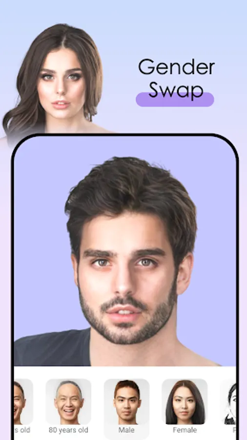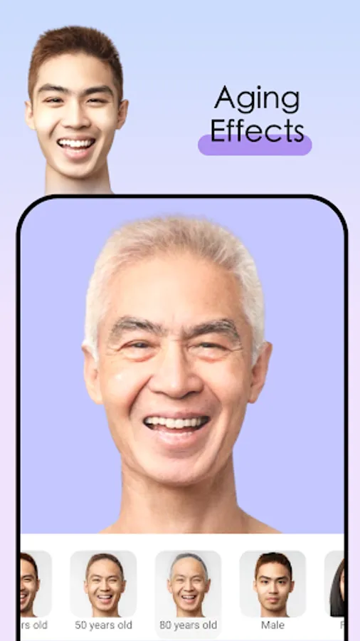 ● If you are still at your 20s, what will look like? With our Face edito you can back to 20 anytime. No matter how old you are, You can all age changer, go back to at your 10s, 40 even 50,see your future self