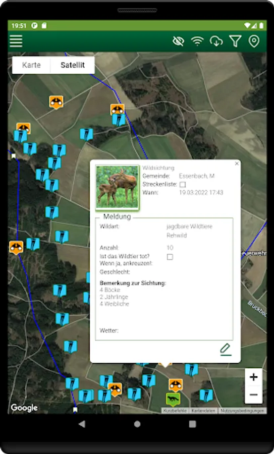 The currently downloadable WildExperte app "Jagd" enables hunters to register their hunting grounds and enter their hunting activities. Territory managers can manage their territory and take other people into account. In addition, a data migration from BJVdigital will take place in the following months and the function of the digital route list will be retrofitted for the usual digital transmission to the lower hunting authorities. In addition, we will set up many other useful hunting functions.