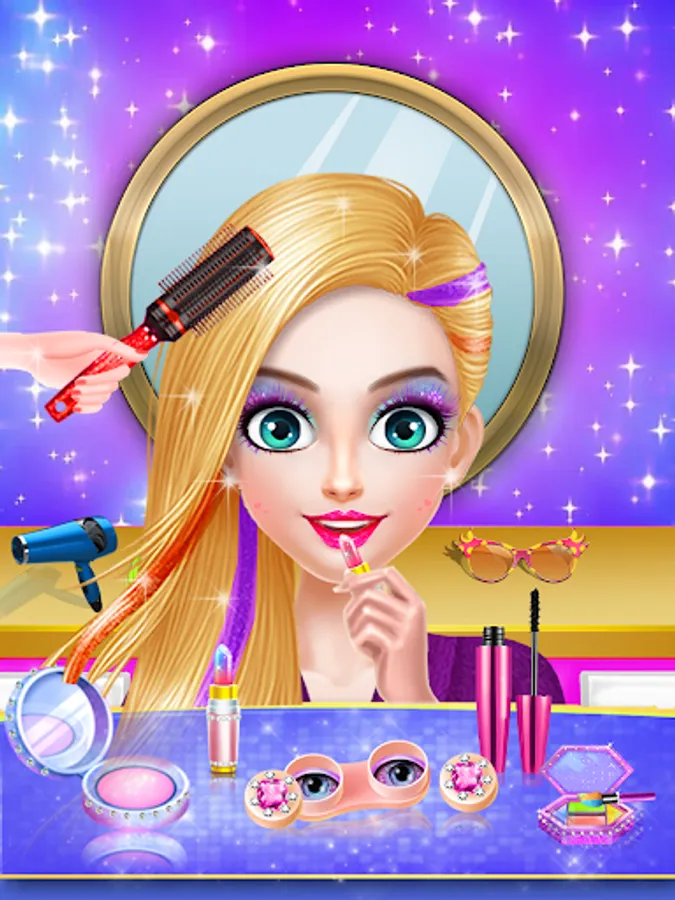In this fashion girl dress up game you have to run your own salon of fashion games for girls. Amaze superstars and supermodels with your skills of a perfect fashion makeover. Perfect nail art and eye art fashion is also waiting for your in this eye painting and nail painting girls game. Style your hands with unique nail salon paints and style your eyes with this eye makeover game.