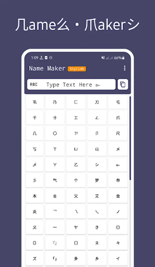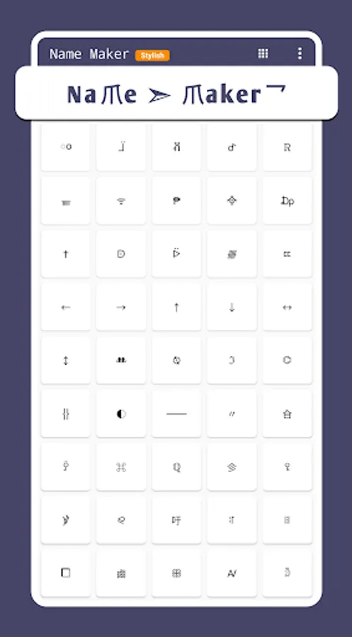 Stylish name maker is app for creating cool and stylish nicknames for games and social media.