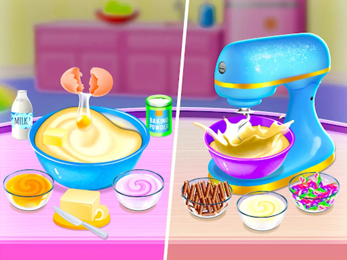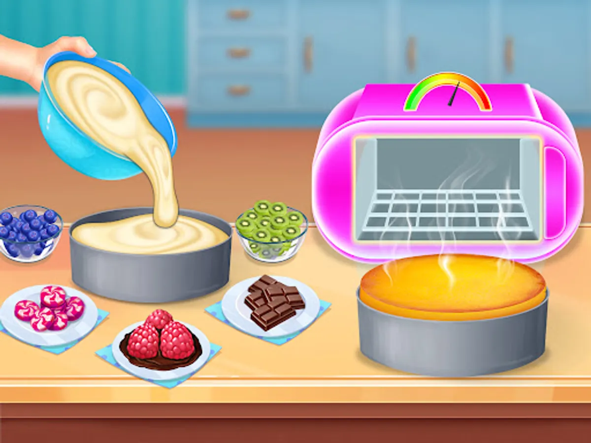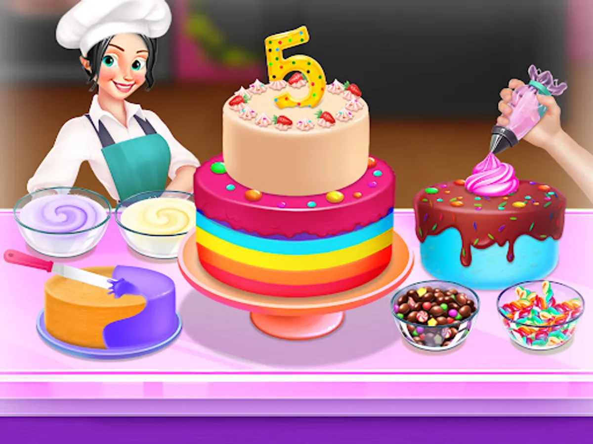 Test your creative cake baking skills and decorating talent & have a unlimited fun in cake bakery kids food Games for girls.