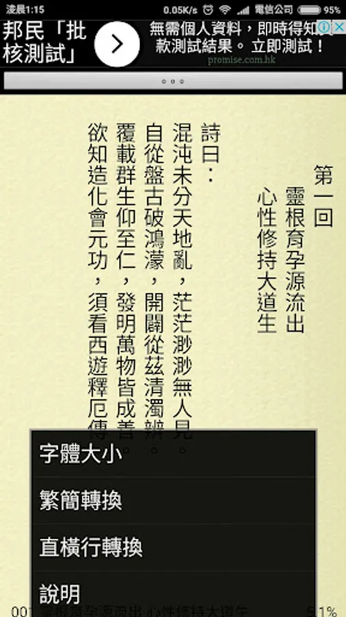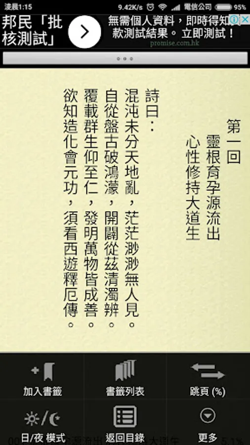 * 注意:改變字體大少,每頁字數會轉變,可能會使已加入書簽,出現(+/-)一頁誤差。