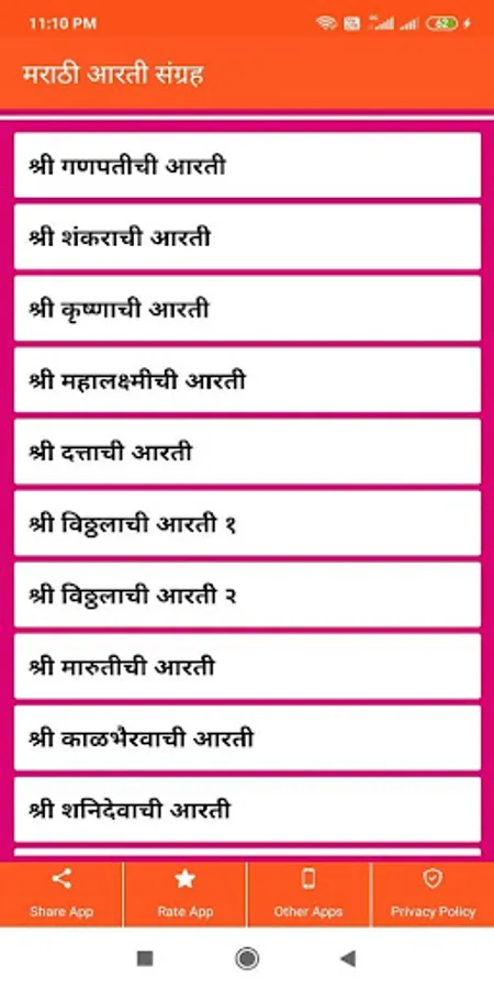 Aarti Sangrah Marathi app is collection of Aarti, Prathana and Stotra.