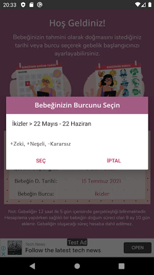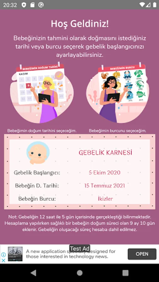 With the Bebişim application, you can learn the date when pregnancy should begin by selecting the date of birth of your baby.