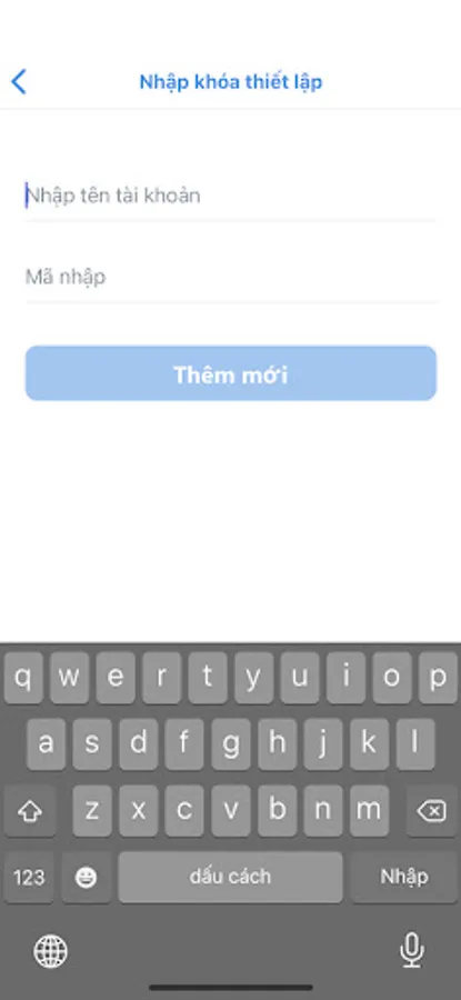 -Enter setup key: Allows users to add new accounts by entering setup key. When the user logs in on Mobile, the system will generate a code string according to the user's account.