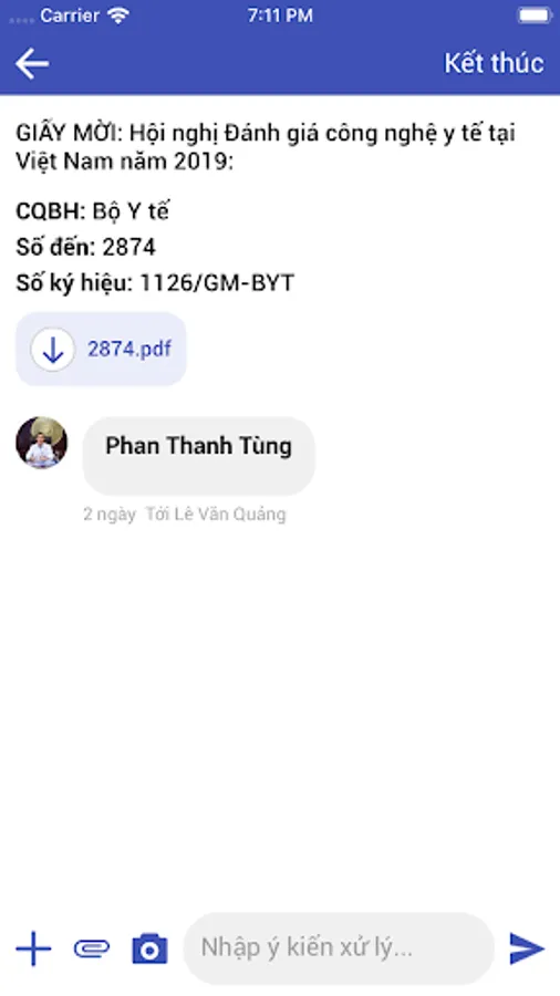 - Quản lý, trình duyệt văn bản đến: Xem văn bản, cho ý kiến xử lý bằng text hoặc giọng nói, luân chuyển xử lý văn bản theo quy trình văn bản đến, lưu vết xử lý văn bản…