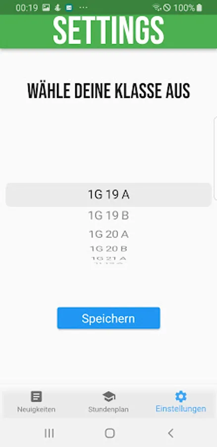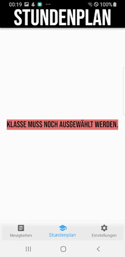 It shows the timetable of the selected class and offers an overview of the latest events in the News tab.
