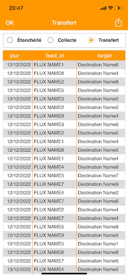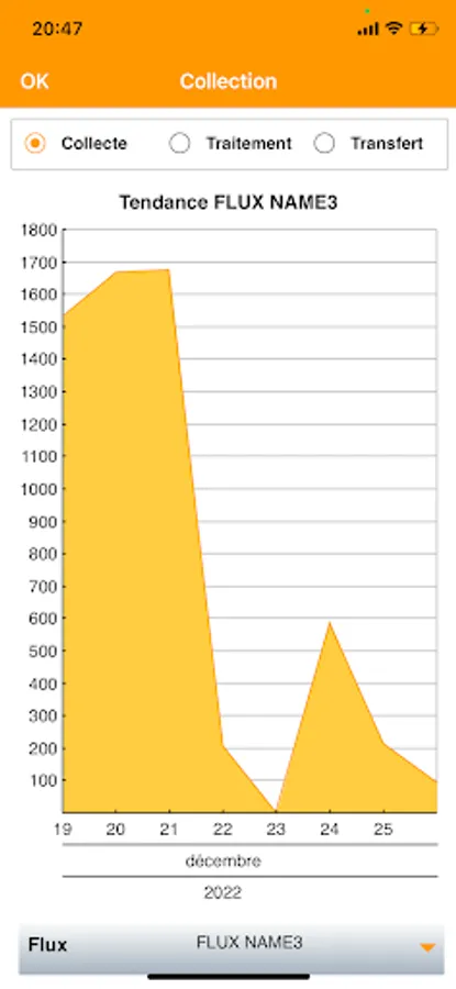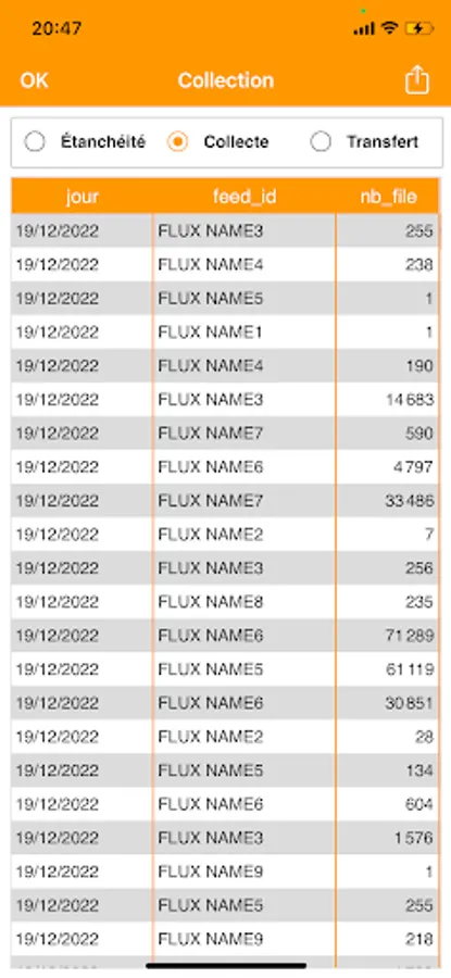 - the trend of data collection by flow and by date to detect any drop in traffic