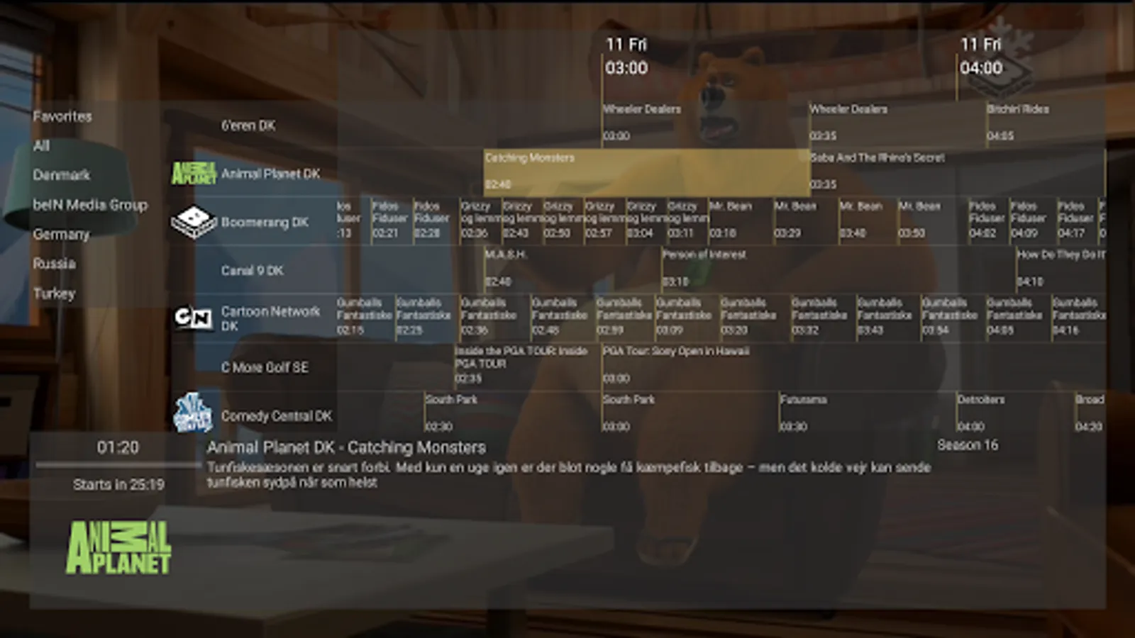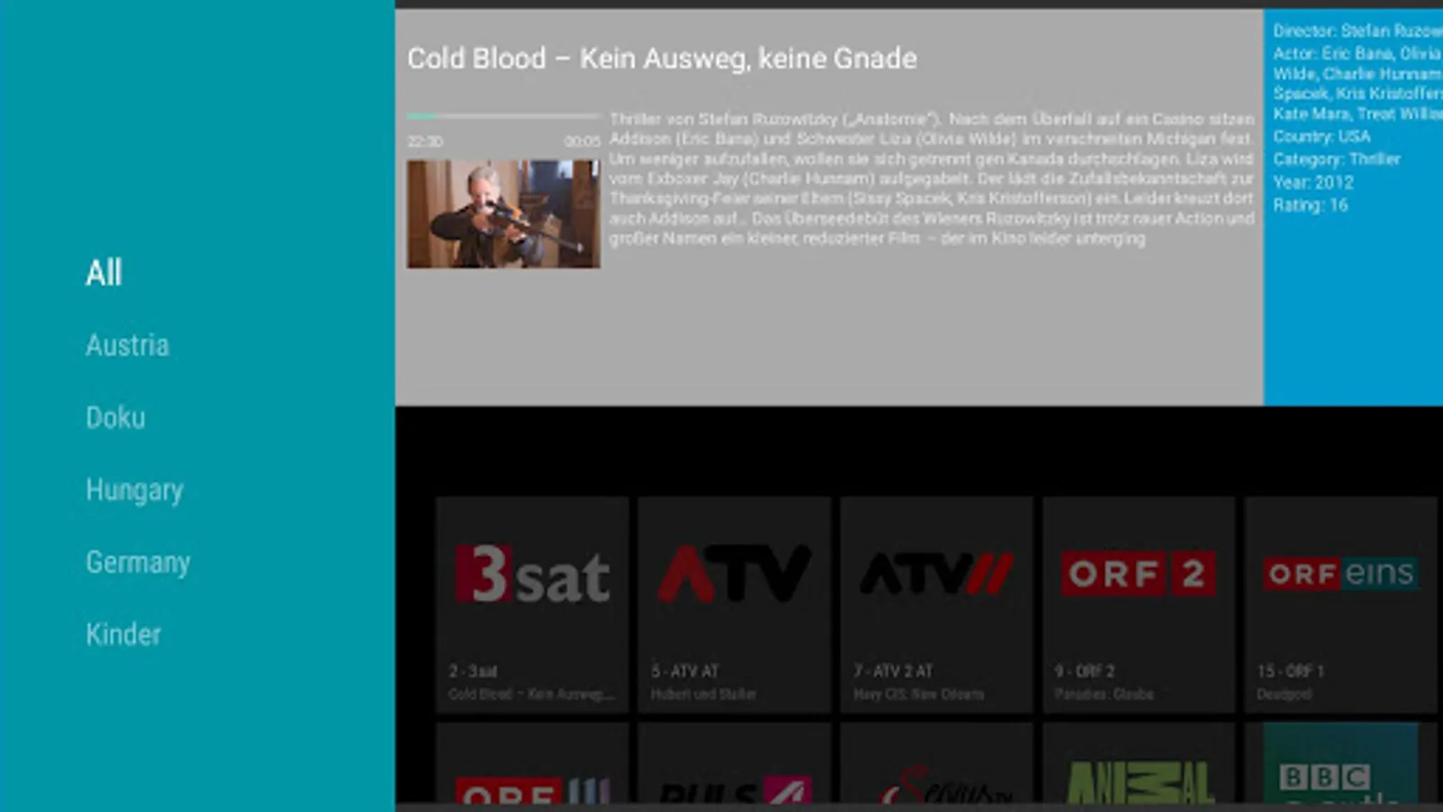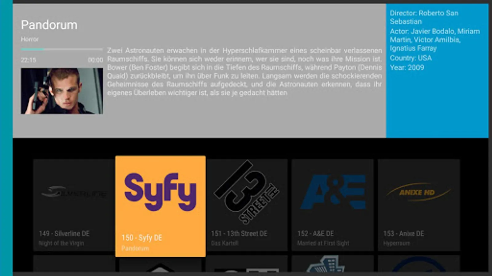 This app was created by the best Electronic Program Guide provider in the world and this app is the only one available, which has full details about the shows, like episode numbers, directors, actors etc.