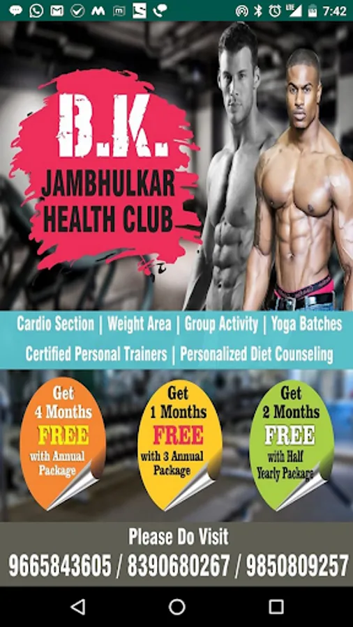 B.K. Jambhulakar Health club is a health and fitness center in Hinjewadi, Pune area. We are giving all the health and body care related services to our customers. We are offering Body building, loose weight, gain weight, Increase stamina, yoga, Cardio, preparing yourself for any kind of Defense Physical exam. We are also running group yoga and health class to improve your health and fitness.