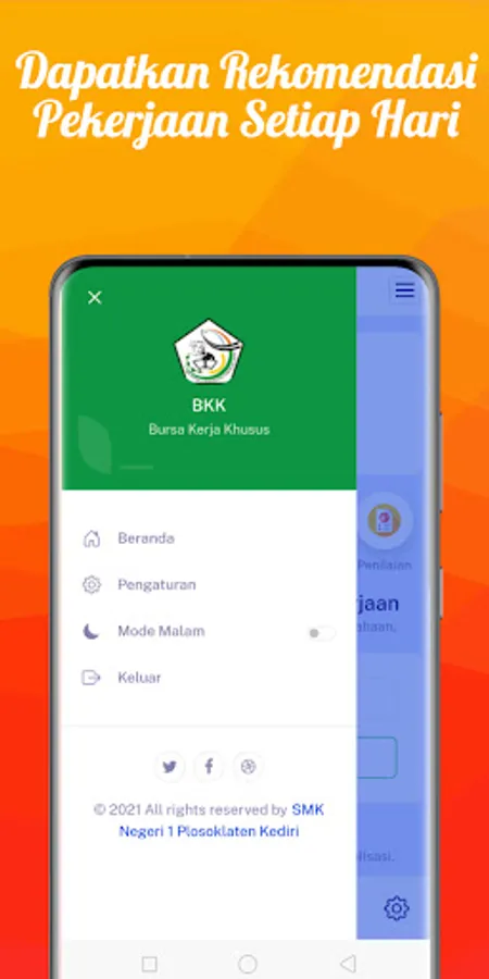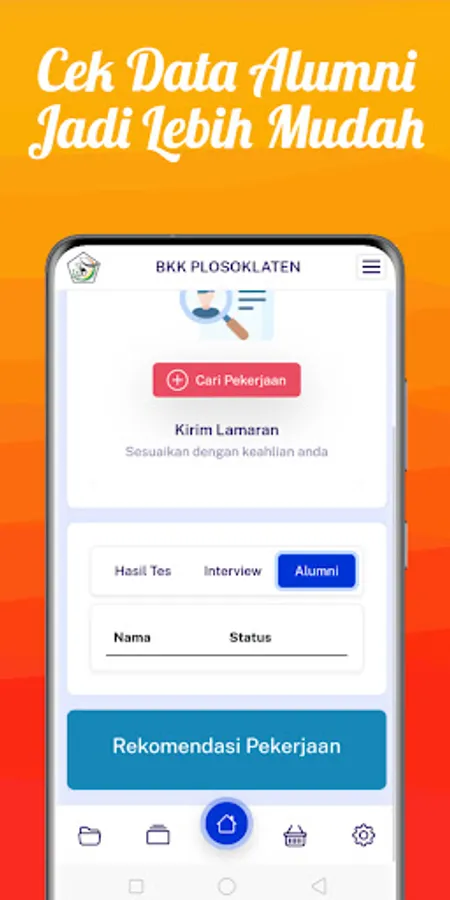 Jo Nggur is an application made by SMKN 1 Plosoklaten Kediri that can help you find and get a job, some of the features in this application include: access for (DuDi, Teachers, Students), direct interaction with each account access, academic tests , interview schedule, BKK activity agenda, alumni tracer, and many others.