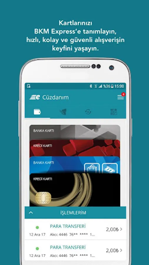 It is possible to make transactions with bank cards that are supported by the BKM Express mobile application. For detailed information, please visit www.bkmexpress.com.tr