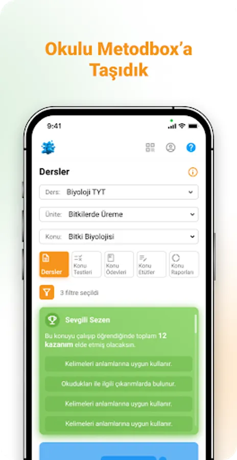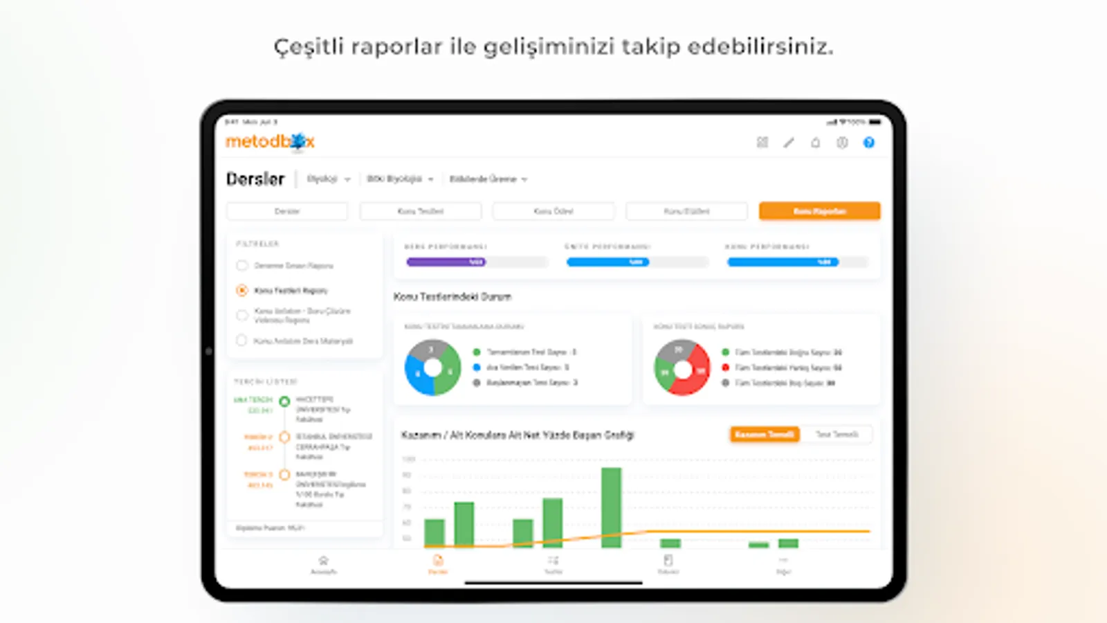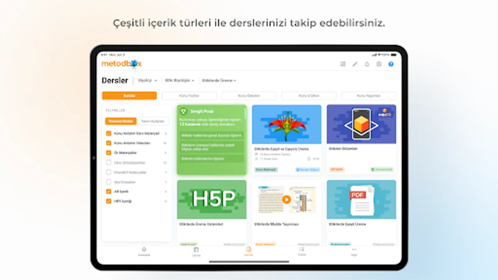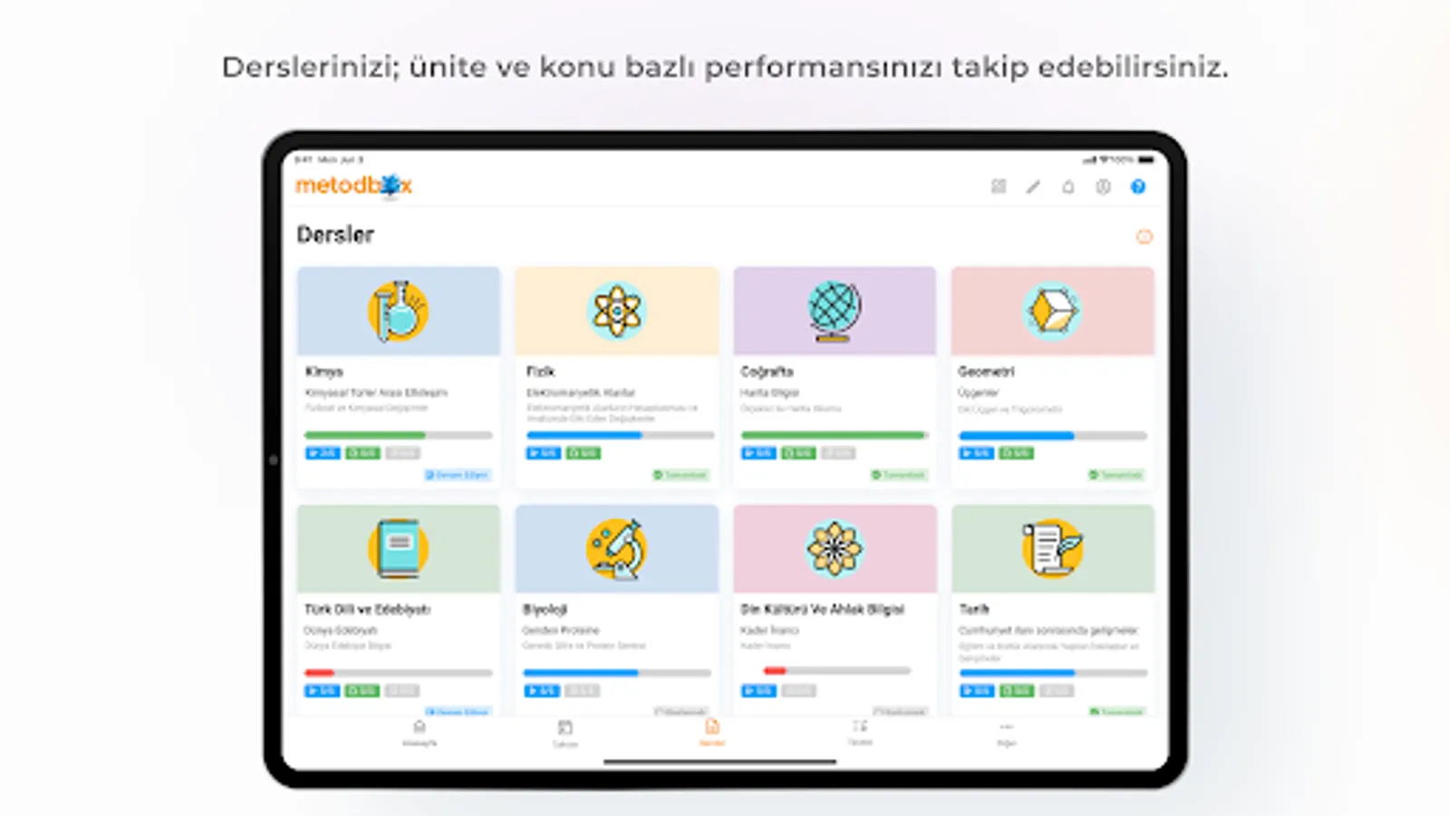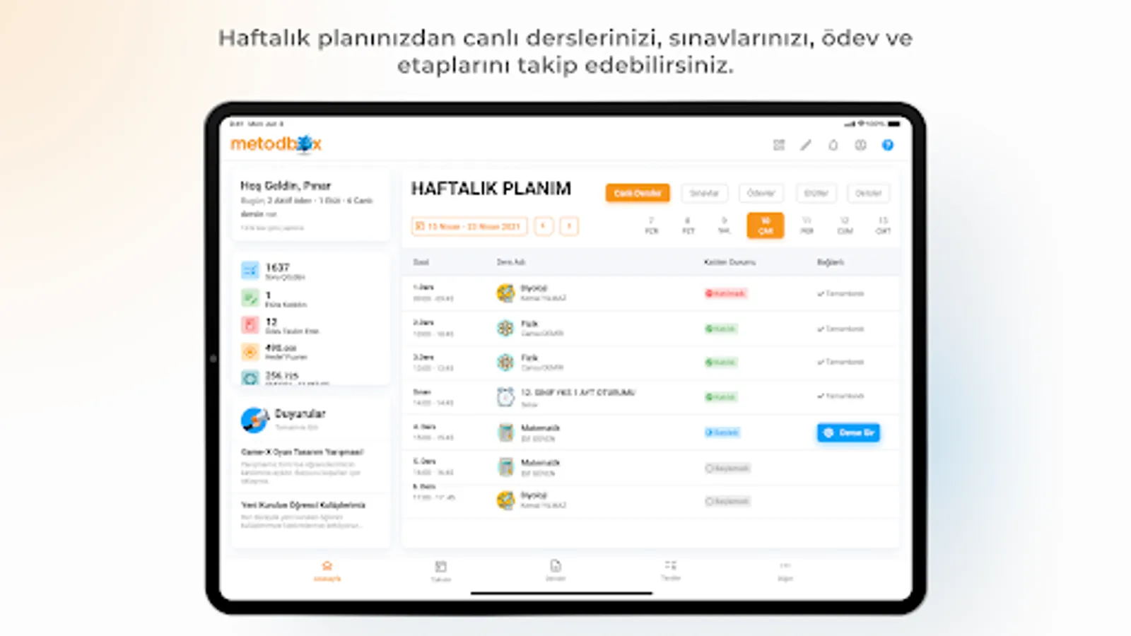Metodbox, which we offer to students, parents, teachers and administrators with its user-friendly interfaces, allows learning anytime, anywhere.