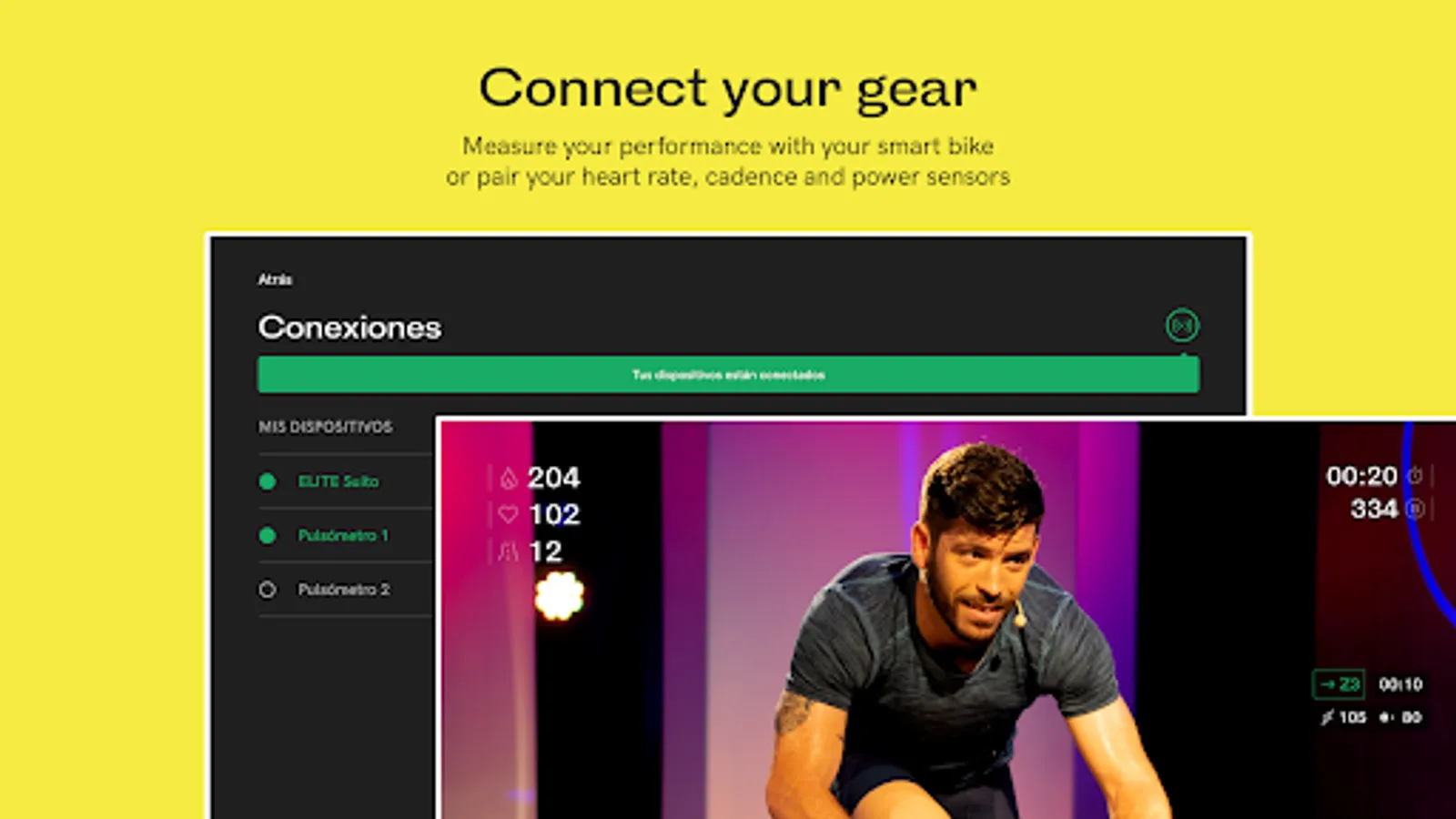 Connect your heart rate monitor, cadence sensor or power meter and enjoy BKOOL Fitness classes on your conventional static bike. Register at bkool.com and enjoy one month Premium for free.