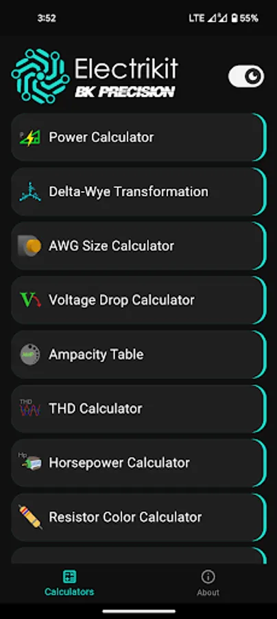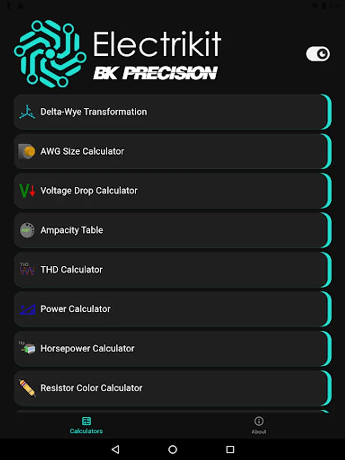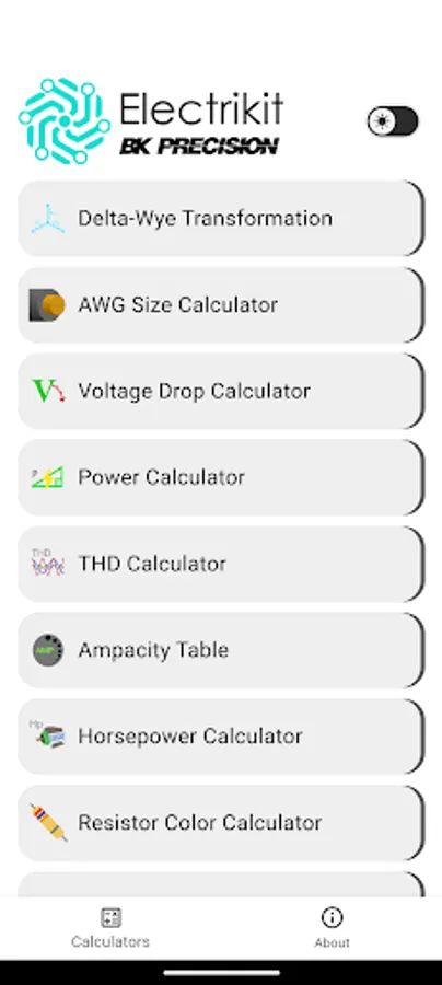 Electrikit is useful to a wide range of people including electronics enthusiasts, students, and professionals. It features many calculators including Power, Delta-Wye, AWG, Voltage Drop, Ampacity, THD, Resistor Code, LED Info, and more. You can easily enter the values of the components and get the results using an intuitive UI. This app is a must-have tool for anyone who works with electronics circuits and devices.