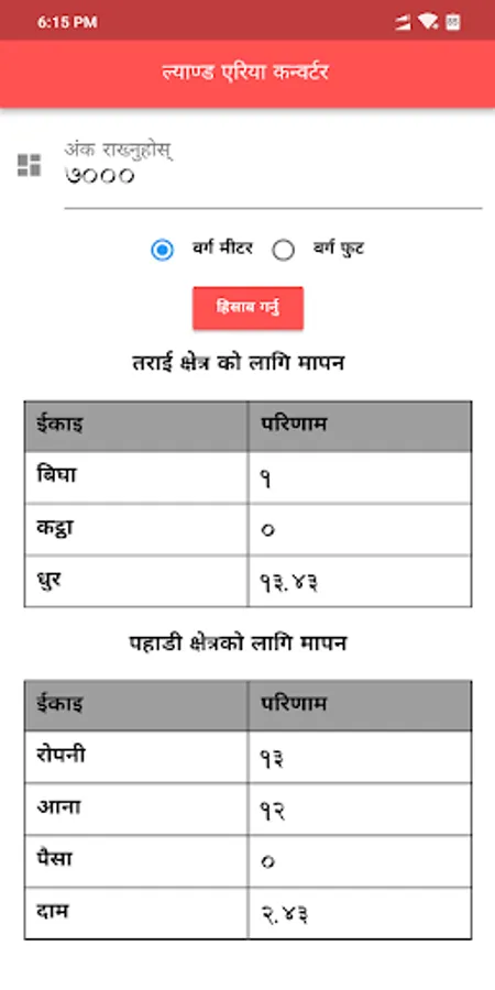 Area Converter is a simple land measurement tool which can be used to easily convert desired Square Feet / Square Meter value to Nepali units of land measurement like Aana, Kattha, Bigha, Ropani, Dhur, Daam, Paisa etc