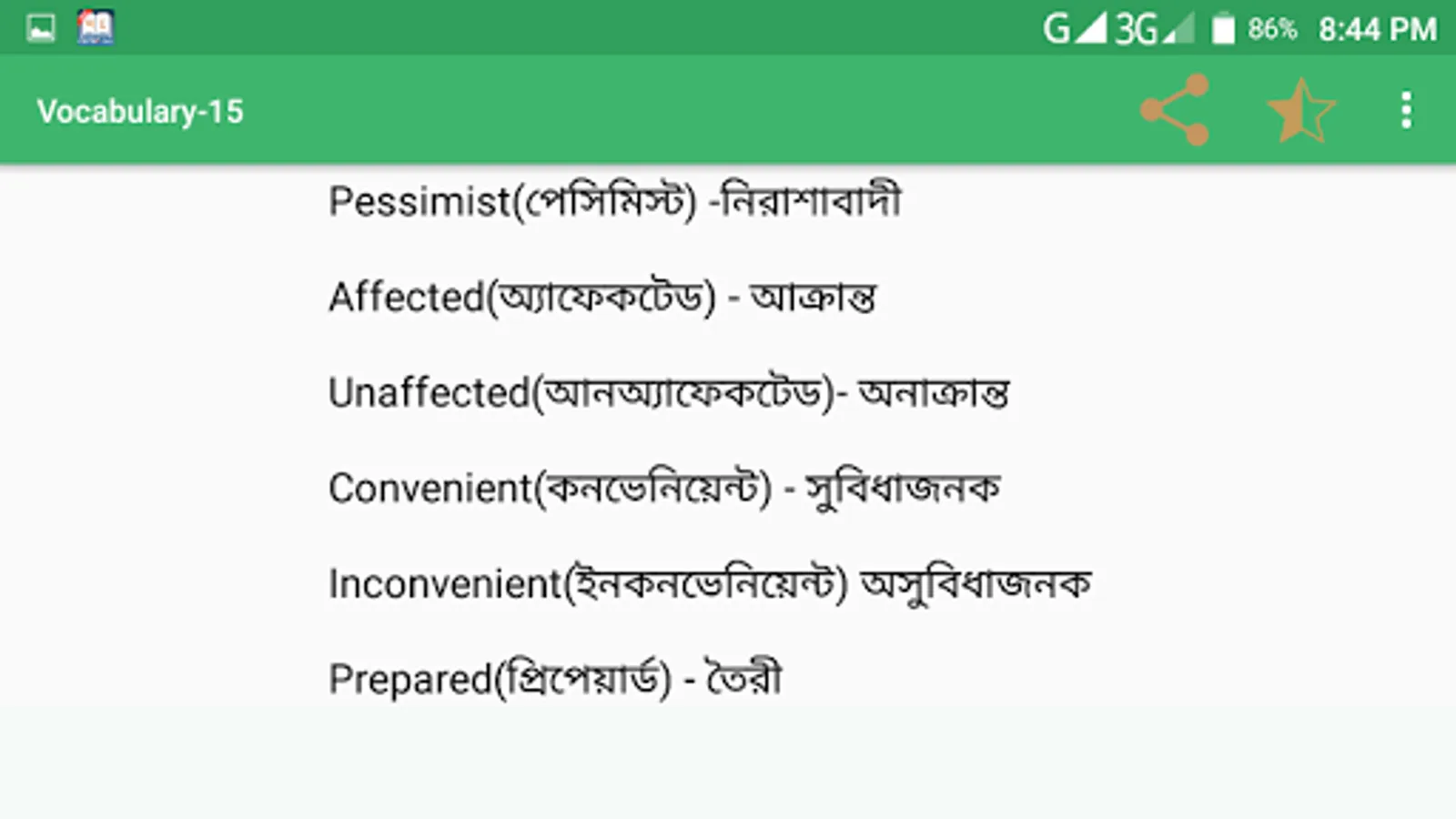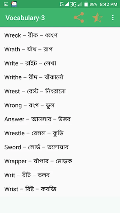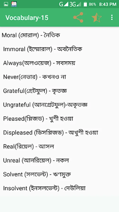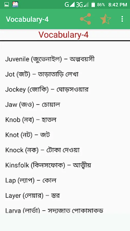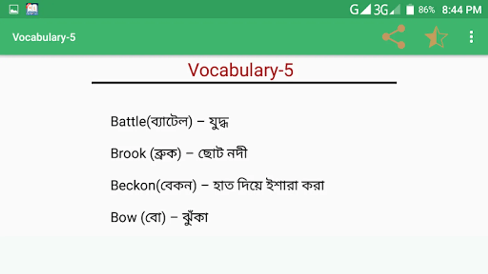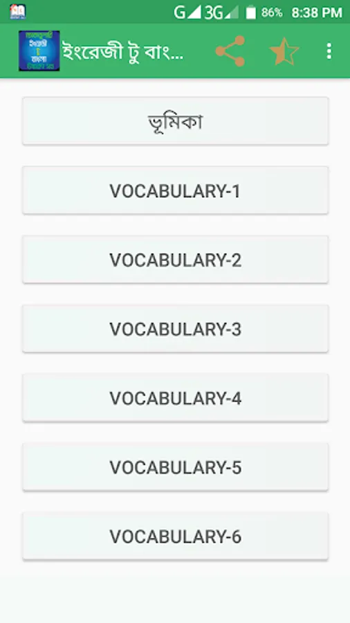 ইংরেজী টু বাংলা ভোকাবুলারি জনপ্রিয়দের মধ্যে একটি অ্যাপস যা আপনে নিজে নিজেই পড়তে পারবেন বলে মনে করি। কারন উচ্চারণ সহ কারে আছে বলেই আপনে নিজে নিজে পরতে পারবেন, অন্য কারোর সাহায্য লাগবে না। তাই দেরি না করে এই অ্যাপসটি ডাউনলোড করুন।