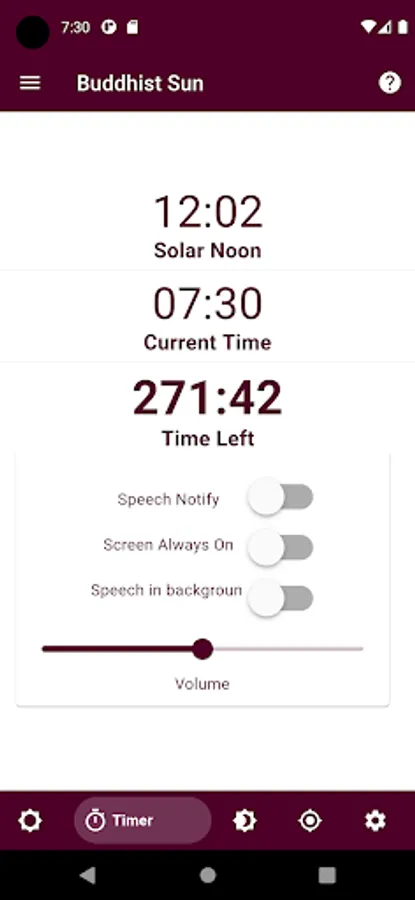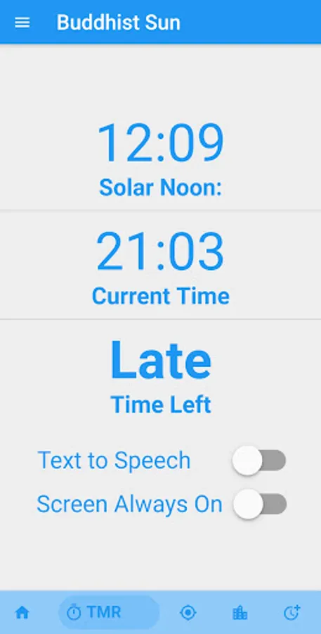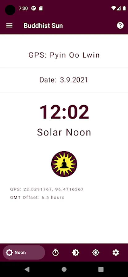 This app calculates the Solar Noon with a speech countdown timer. It is specifically made for Buddhist Monks, but those who follow 8 or 10 precepts will find this useful.