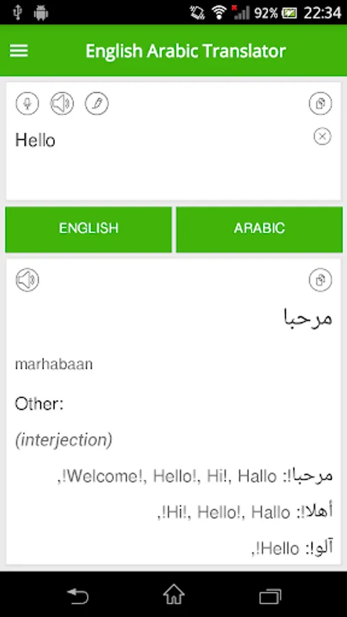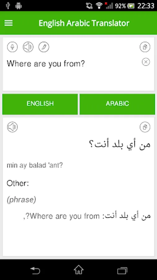 With English Arabic Translator you can translate words and text from English to Arabic and translate Arabic to English. Best English-Arabic translation for student, tourist or traveler.