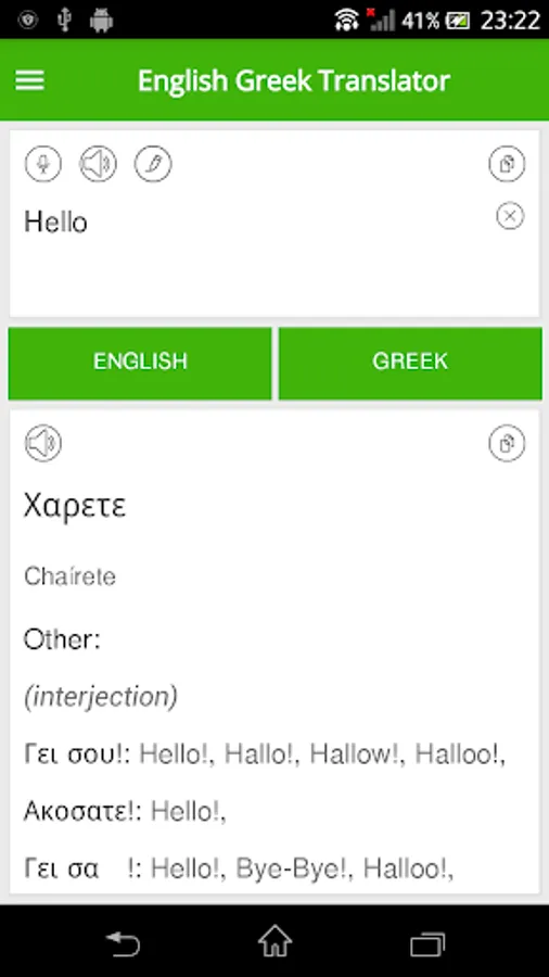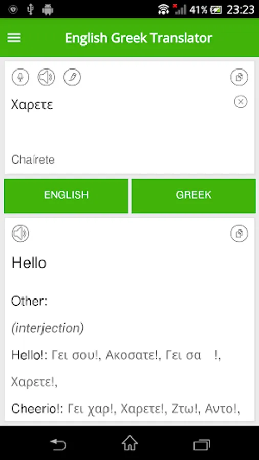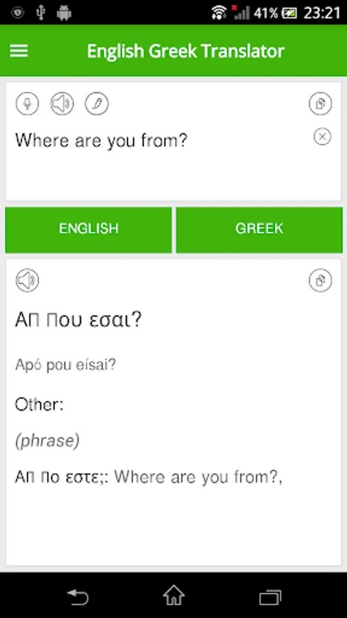 With English Greek Translator you can translate words and text from English to Greek and translate Greek to English. Best English-Greek translation for student, tourist or traveler.