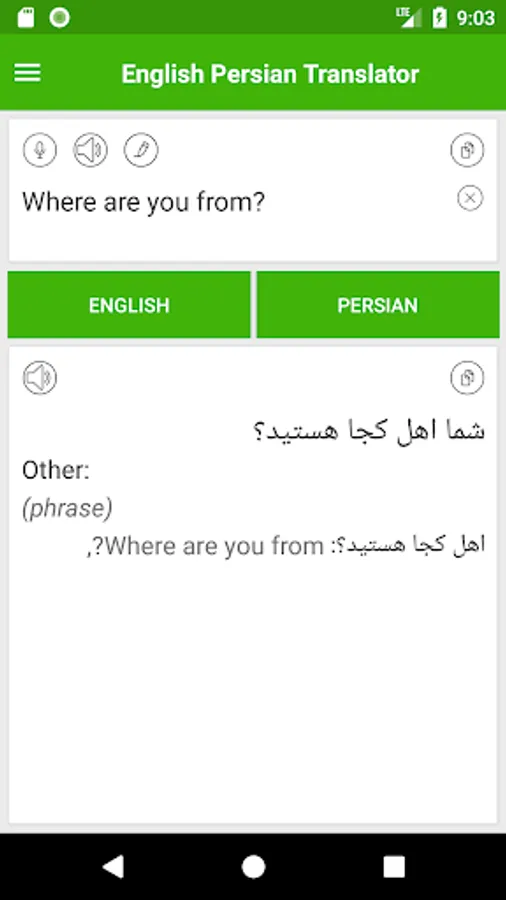 With English Persian Translator you can translate words and text from English to Persian and translate Persian to English. Best English-Persian translation for student, tourist or traveler.