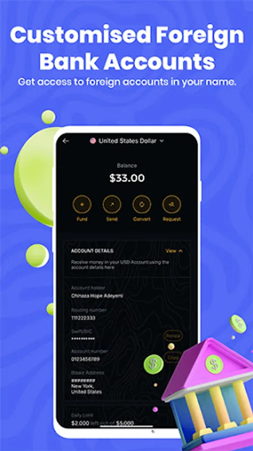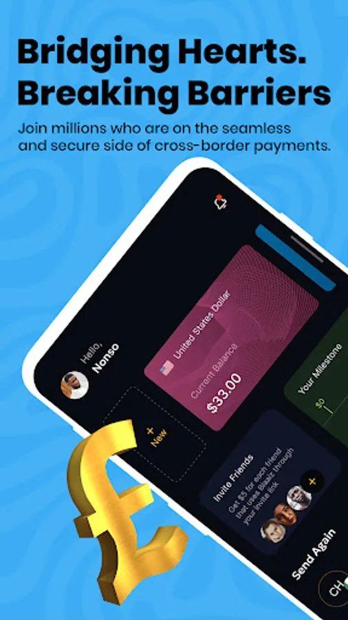 - Transfer funds to a Blaaiz user, in 8+ currencies, by simply using their username.