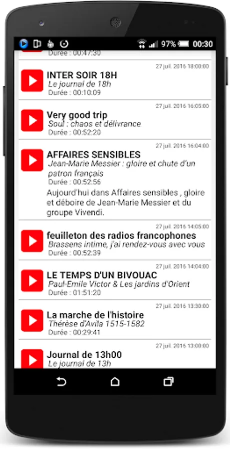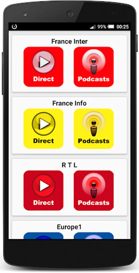 This application allows you to listen to these radios live on your phone and also listen to all your favorite shows in replay / podcast.