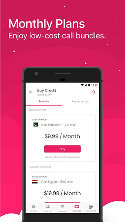 Only the person who places the call needs to install BlaBla Connect. Whoever receives the call only has to pick up his phone! Additionally, BlaBla Connect matches your calling needs. Enjoy low-cost calling subscriptions, as well as limitless Pay as You Go plans. ๐