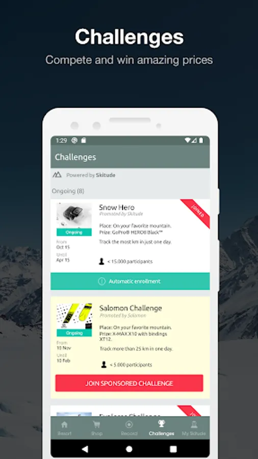 Set up your Skitude profile to track your activities using the GPS tracker. Find out where you are in the season's rankings and try to complete the challenges to be in with a chance of winning great prizes.