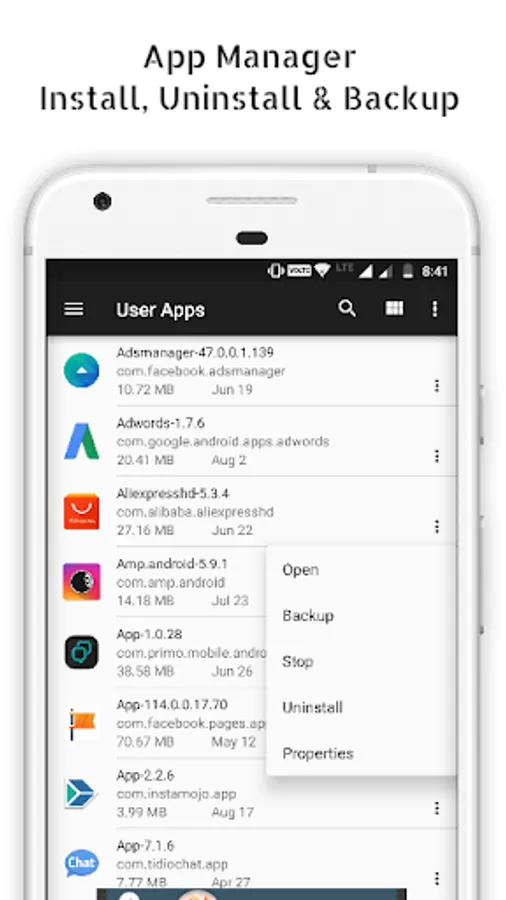 ★ App Manager and Process Manager Free memory by killing tasks and speed up your phone instantly. Quickly and easily uninstall multiple unwanted applications and free up phone storage space which is very valuable. App Manager helps you save your favorite apps on to memory and install them back again when needed.