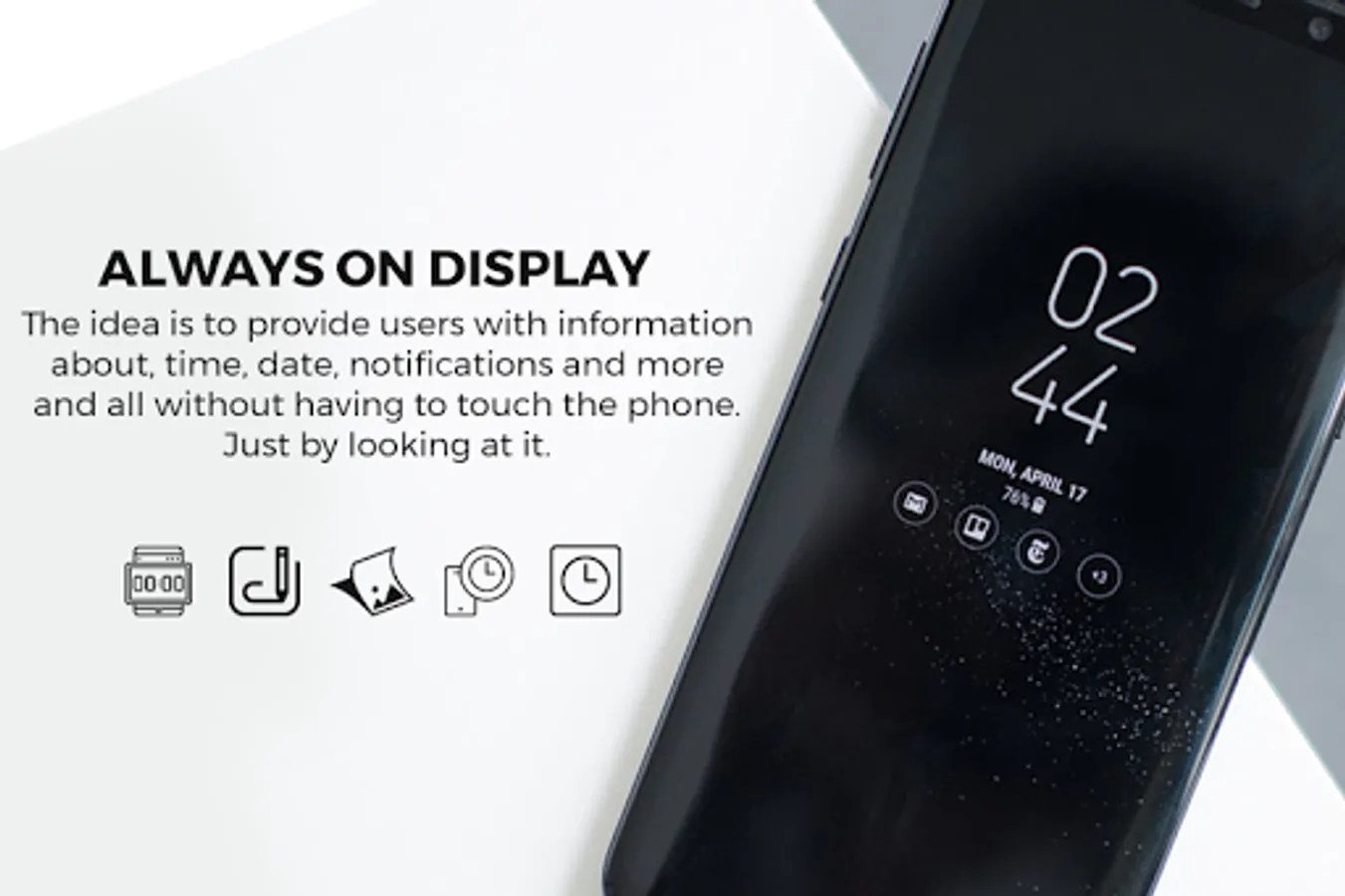 If you don’t know what time is it? You don’t need to turn your mobile screen on just look at your mobile screen always on display clock will show you time. It is a new cool way to maximize your screen on time by setting up the black background on your AMOLED home screen. This is made possible thankfully by always on display clock. To save battery real time clock wallpaper stays your phone screen black except for a few pixels to show digital clock on screen.