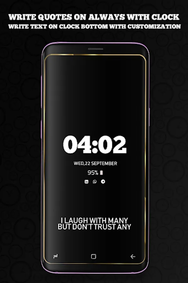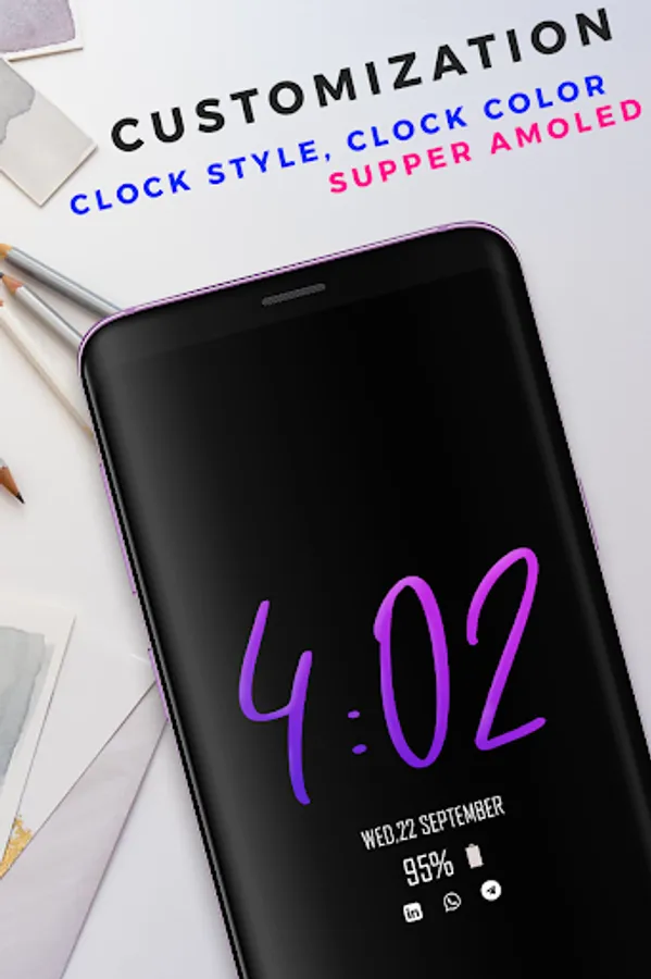 Just open Amoled Photo Clock Wallpaper Always On Display enable lock screen clock service and select any clock from the collection i.e. digital clock, analog clock, edge clock. You can also select picture from your galley to make photo clock live wallpaper. You user can easily turn clock on/off.