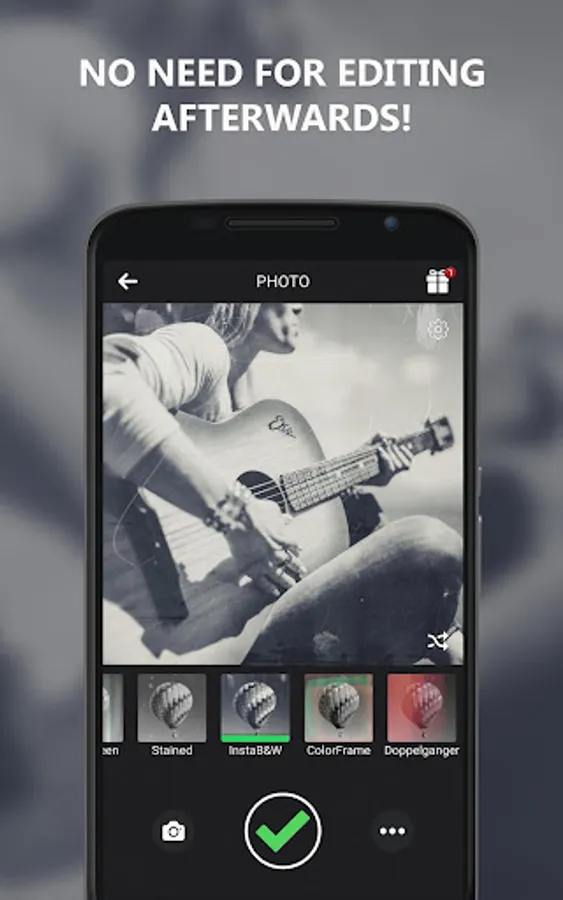 The black and white camera filters and photo effects this app has will bring your lovely photos to a whole new level! Make photos black and white! If you think that there is only one way to make photos black and white - think again! Download the dark camera app and let the fun begin! If you want to edit some of your previously taken pictures, use these awesome dark camera photo effects. Add a vintage look and light leaks or select which part you want to remain coloured. If you are planning on taking a pic now, find favourite photo filters and apply them before taking a photo. Within seconds you'll get beautiful pictures you and your friends are going to adore!