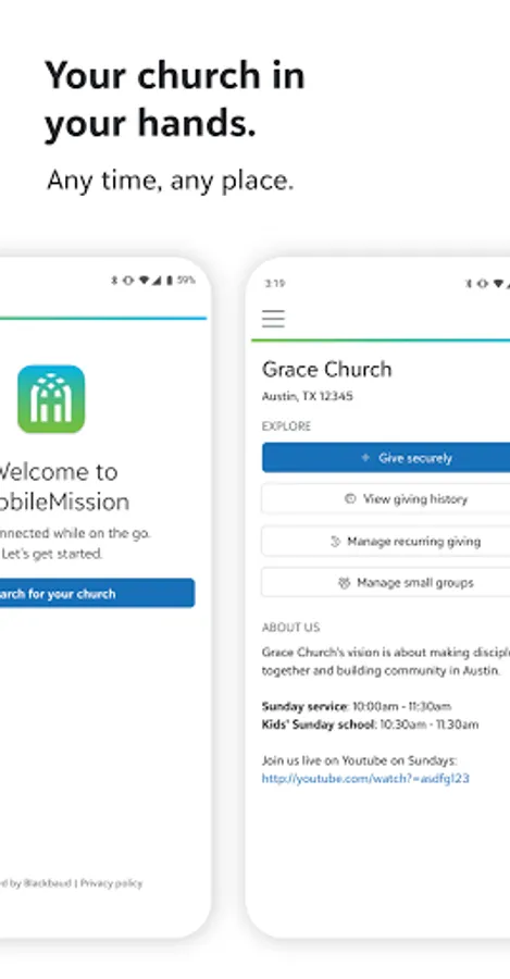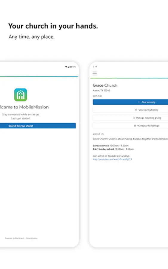 Please note that your church must be a Blackbaud Church Management™ subscriber in order for you to use the Mobile Mission app.